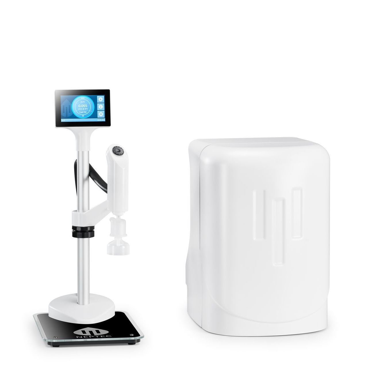 Interagieren Sie nur mit Ihrem HALIOS-Spender. Das kompakte Hauptsystem lässt sich problemlos in die Laborumgebung integrieren. Für Labore, die mehr als eine Entnahmestelle für Reinstwasser benötigen, können bis zu vier Spender angeschlossen werden.