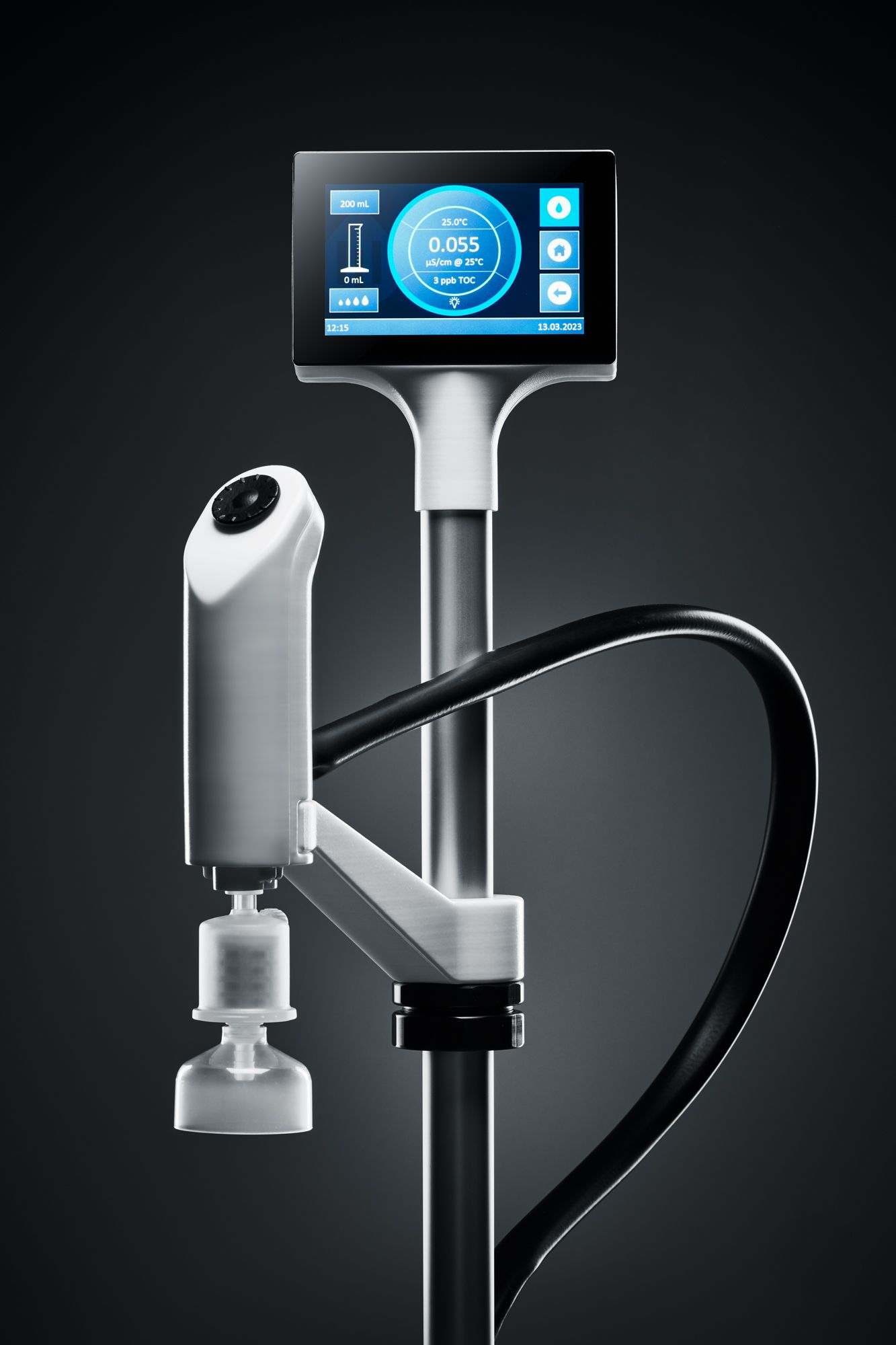 Dispensing ultrapure water from your HALIOS dispenser feels immediately familiar. The sophisticated shape let you operate the unit easily with just one-hand. All dispensing functions that are useful for daily work in the laboratory can be accessed directly on the handle.