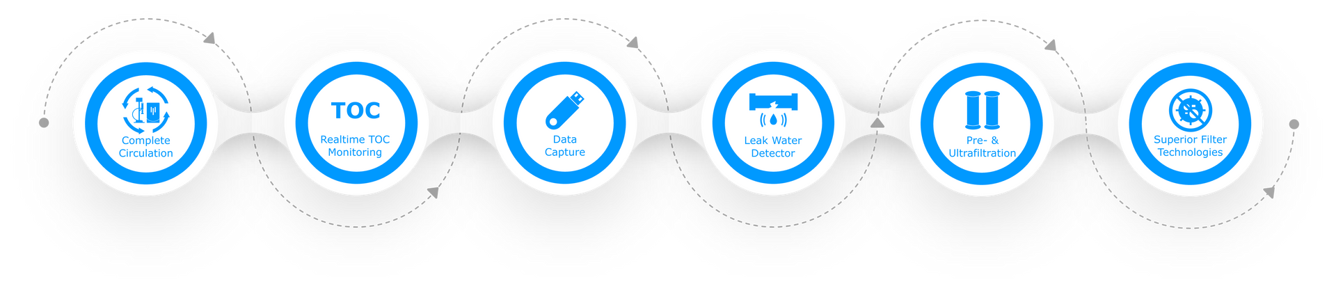 | Total organic carbon (TOC) | ≤ 2 ppb ≤ 10 ppb (without UV) |