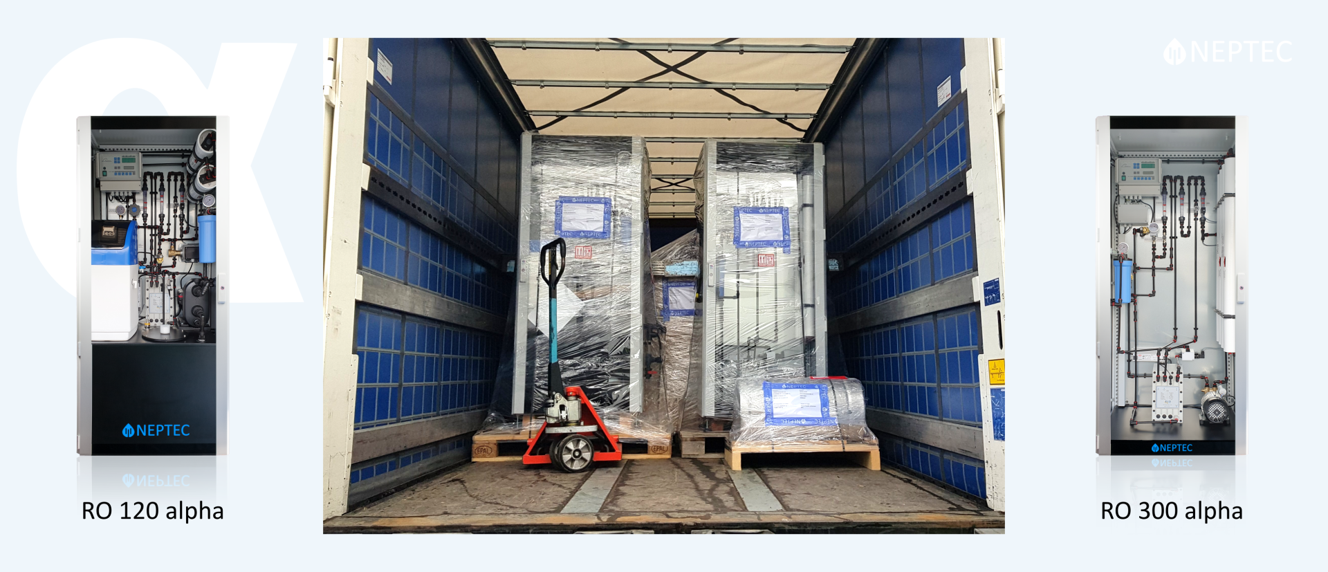 Thanks to the modular design we were able to build everything in one compact, dust-proof and extremely silent cabinet. Our RO alpha with a production rate of 120 L/h including a built-in EDI, softener, 160l tank, frequency-controlled pressure pump, UV tank disinfection, sterile overflow and sterile vent filter is the ideal system.