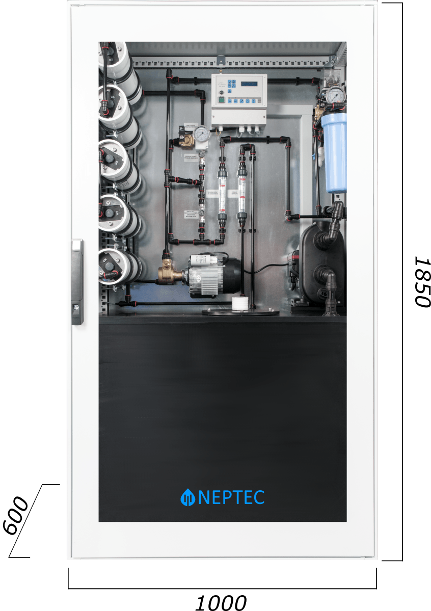 All the extraordinary components of our RO alpha packed into a larger cabinet for more tank capacity (300l).